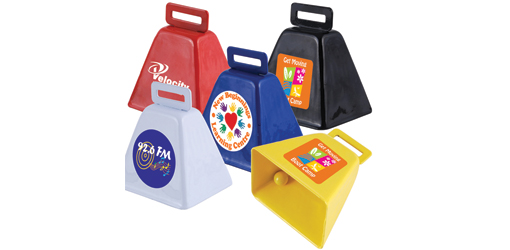 Get your message noticed with these painted steel cow bells. Cow Bells are a fun and loud way to show team/company spirit, perfect for cheering on contenders.