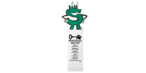 Dollar Sign character printed onto EVA foam with googly eyes. Bookmark features unique white folded split action PVC with magnets at base so won't fall out when placed in books.