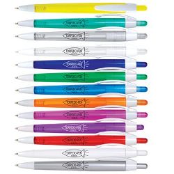 Affordable writing instrument in a wide selection of transparent colours. Push button with White clip.