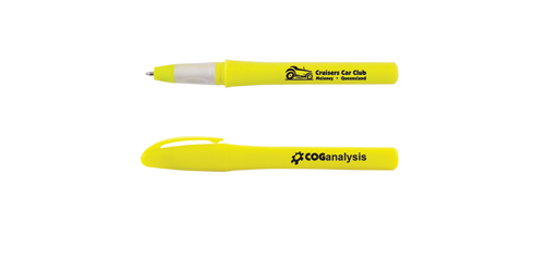 No ordinary highlight marker, twist the tip and it turns into a ballpoint pen, twist back and the highlighter returns. Features pull cap ballpoint pen and chisel tip highlight marker.
