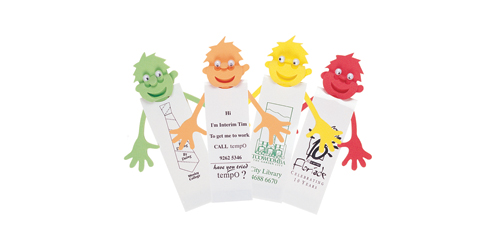 EVA Foam Elroy character with googly eyes and spiky hair available in assorted or single colours. Bookmark features unique white folded split action PVC with magnets at base so won't fall out when placed in books.