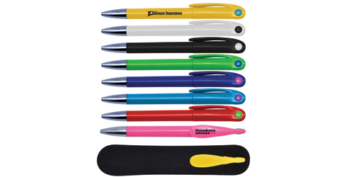 Slimline writing instrument in a wide selection of vibrant colours. Twist action with contrasting accent.