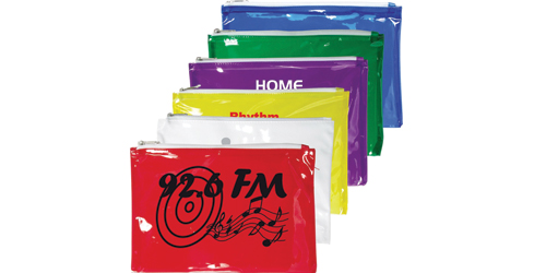 PVC case with White zip closure. Use to hold stationery, kids items, cosmetics, first aid items, medications, sample collections, labels, coupons and computer cables.