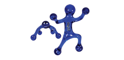 4 legged crouching man shape massager with 4 massaging points. Smiley face printed on front.