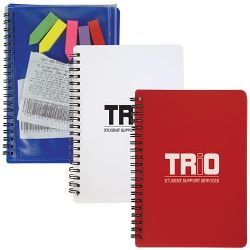 Spiral Notebook with PP Cover. Recycled 70 page lined paper double spiral binders. Clear PVC pouch with slide zipper on back.