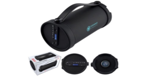 Massive 2.1 inch Hi-Fi Bluetooth speaker with 4 inch Subwoofer and FM Radio. Carry handle for easy portability. Very clear sound and heavy bass. A2DP Bluetooth. Wirelessly stream music from any Bluetooth enabled device such as your smartphone, notebook, tablet or plug in included 3.5 audio jack into the speaker. Easy charging with included USB cable. Enjoy music up to 4 hours (at medium volume) and wirelessly up to 10 metres. User guide included. Features Micro SD card reader (4GB card available at extra cost).